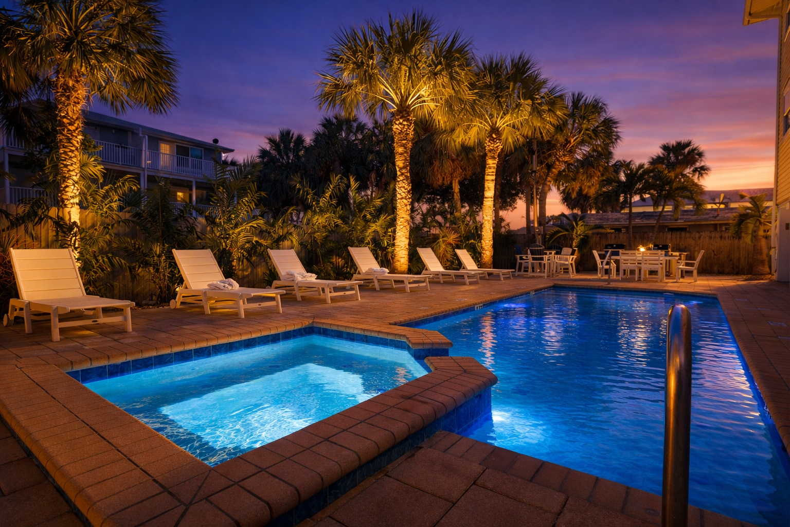 Book one condo or reserve all four. Condo Del Mar offers boutique coastal stays with a heated pool, game room, and easy beach access.
